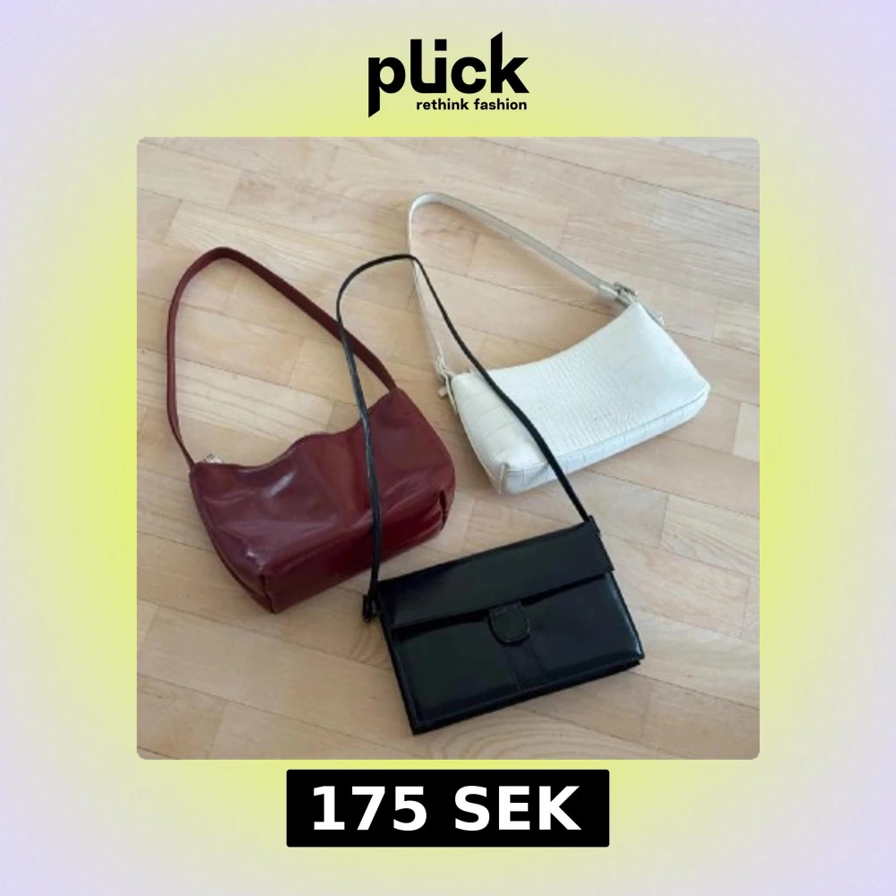 Säljer två snygga axelväskor i olika färger och material. ‼️OBS. RÖDA ÄR SÅLD‼️ En vit väska med krokodilpräglat mönster och en svart väska med enkel design. 100 kronor per väska! 175 för båda två 💕Den vita är från NAKD och den svarta är vintage!