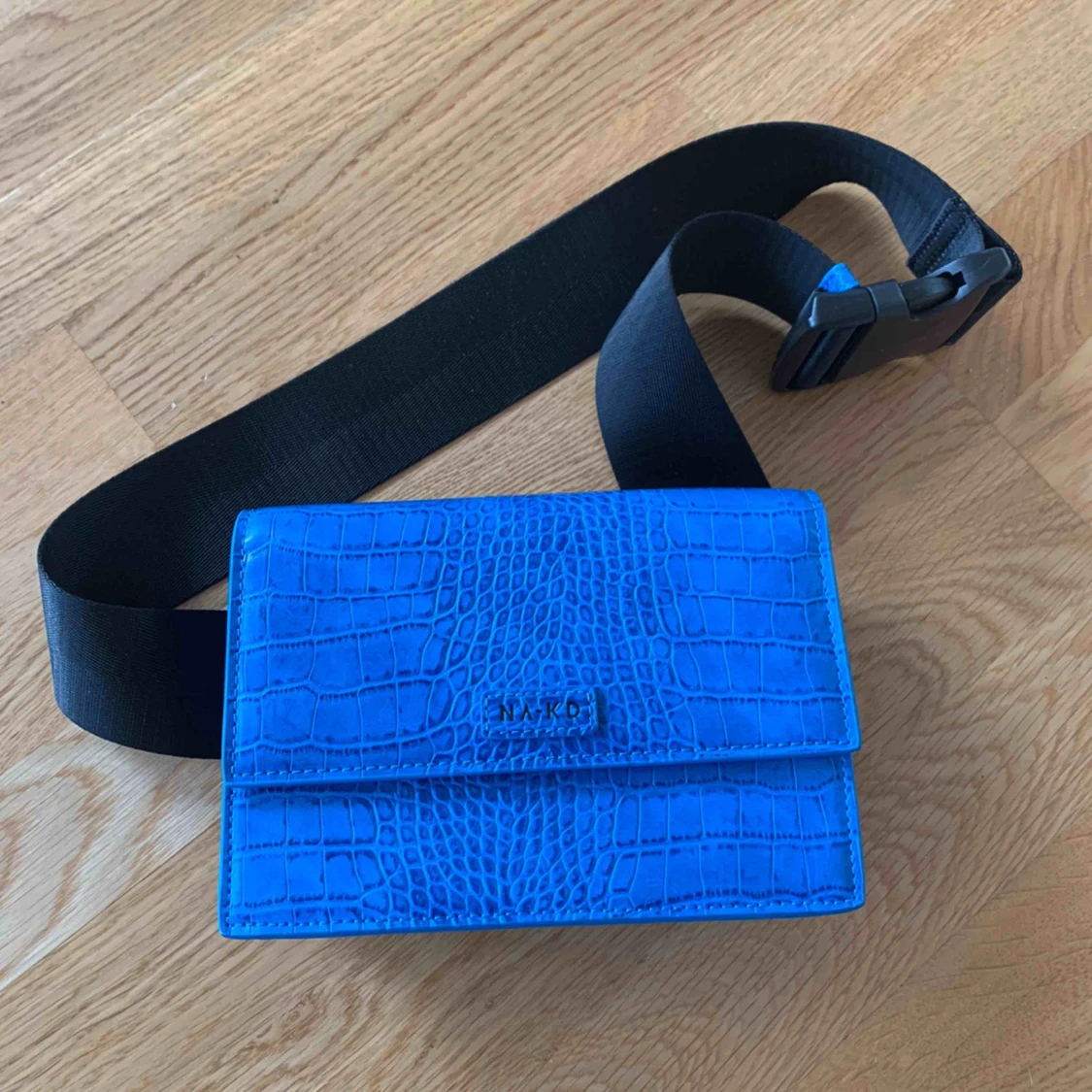 Blå väska från nakd, köpt för 299, mitt pris 100kr Använd Max 3 gånger, och är i nyskick, man kan använda den på lite olika sätt.