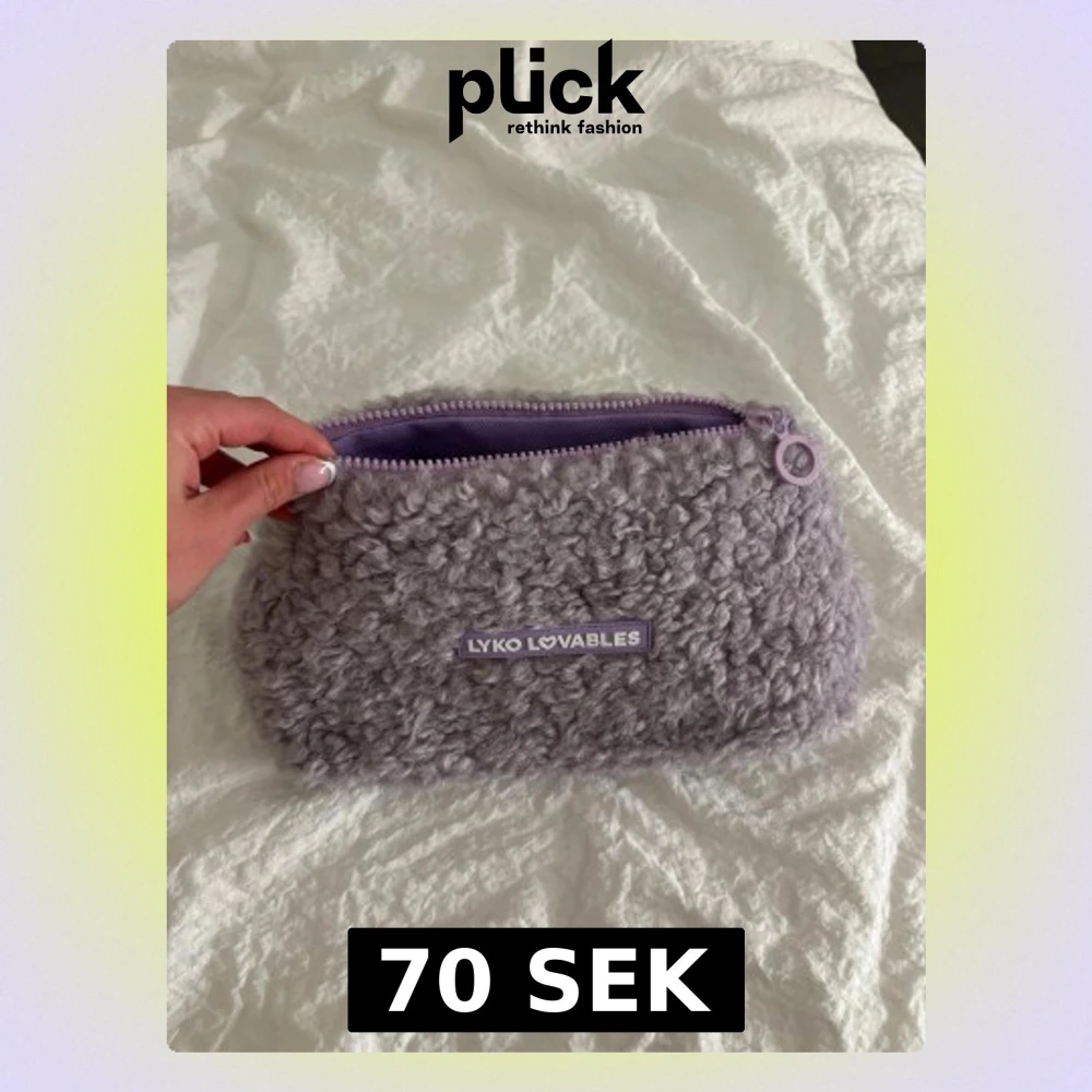 Superfin ljuslila necessär från Lyko Lovables med fluffigt, stickat yttre och matchande lila dragkedja. Perfekt storlek för smink eller småprylar. Insidan är fodrad i lila tyg och väskan har en mjuk, rundad form. Snygg detalj med Lyko Lovables-logga framtill.