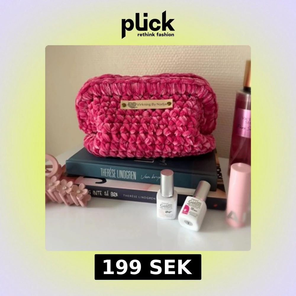 Virkad necessär - Kelly - 🩷 En handgjord necessär med ihopfälld bar ram 🩷 Virkad i ett härligt chenille garn 🩷 Psst, namn etiketten går att ta bort om så önskas 🩷 Storlek M: Bred ca 17 cm - Lång ca 22 cm 🩷 Virkad av mig @virkningbynadja (Kolla min profil för fler färger) Kolla gärna in min Instagram för mer, @virkningbynadja ✨