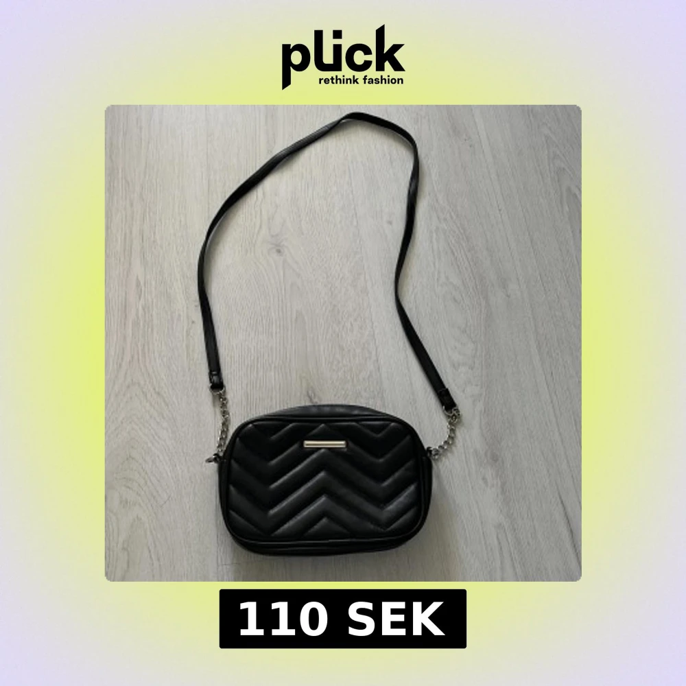 Snygg svart axelväska med quiltat mönster och silverfärgade kedjedetaljer på axelremmen. Väskan har dragkedja upptill och ett innerfack med dragkedja. Perfekt storlek för det viktigaste