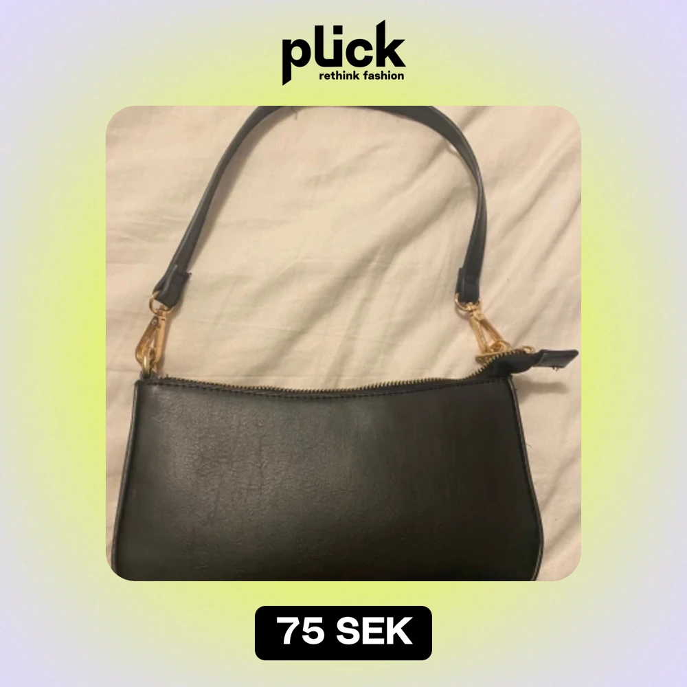Svart väska med guld dragkedja One size Välanvänd Har ingen aning vart jag köpte den, men tror det är new yorker Utsidan är 100% polyuretan Insidan är 100% polyester