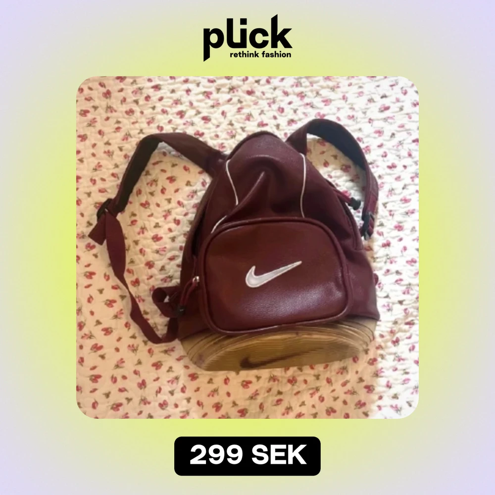 vintage Nike läderryggsäck från 90-talet i vinröd färg. Den har mindre slitage, bubbelbotten har några fläckar inuti (från en penna). kanske kan gå bort med Vanish. mycket rare väska!!Mått ca 29x32
