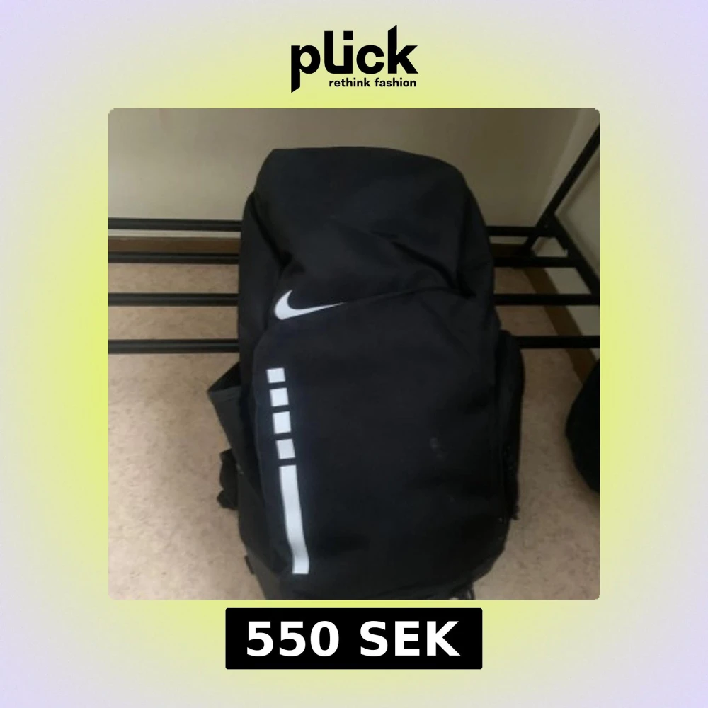 Säljer en svart ryggsäck från Nike med vit logga och texten 'ELITE' på axelremmarna. Ryggsäcken har flera fack och justerbara remmar för bekväm passform. Perfekt för träning eller vardagsbruk.