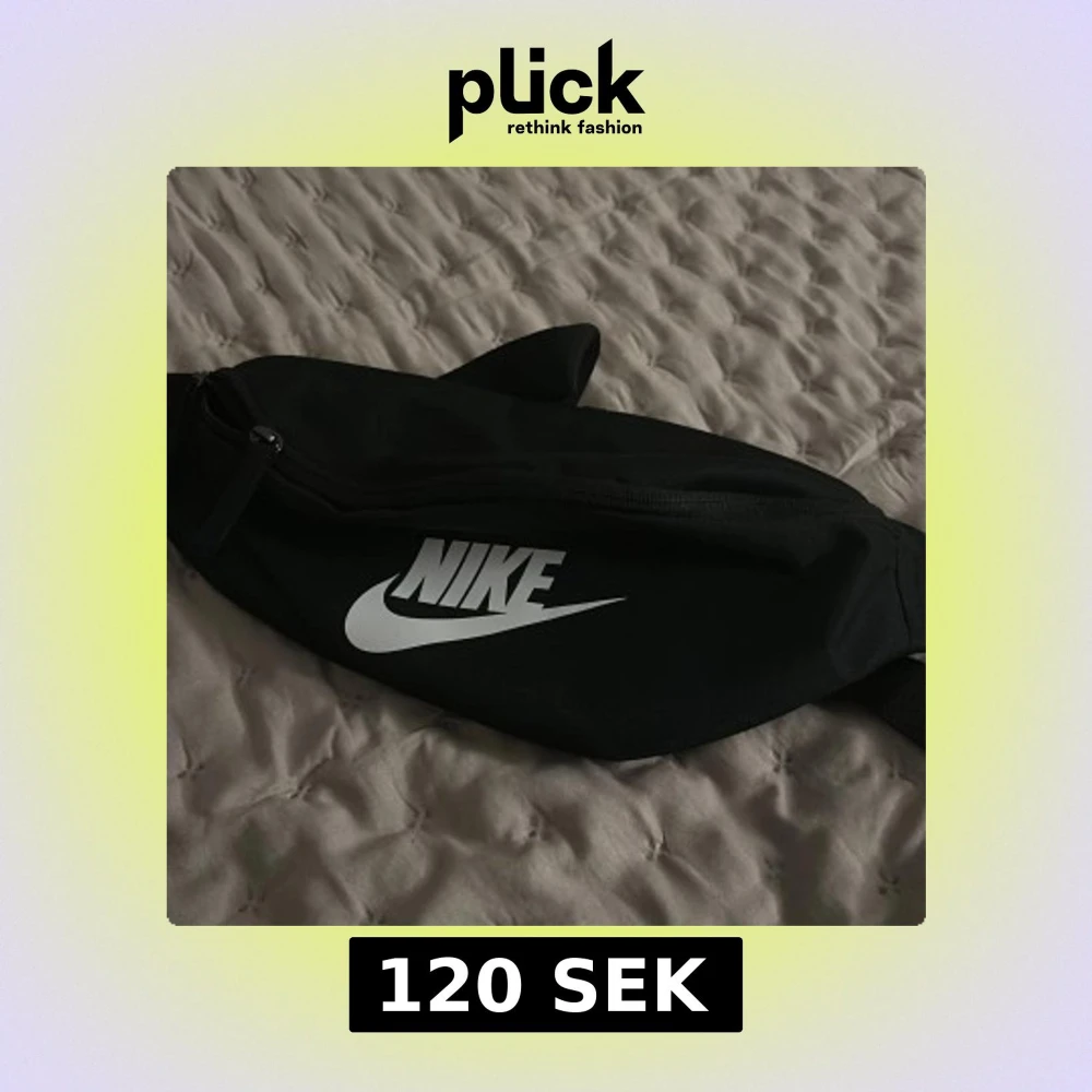 Säljer en svart magväska från Nike med klassisk vit logga framtill. Väskan har justerbart band och dragkedja upptill. Perfekt för att bära mobilen, plånboken och andra smågrejer när du är på språng.