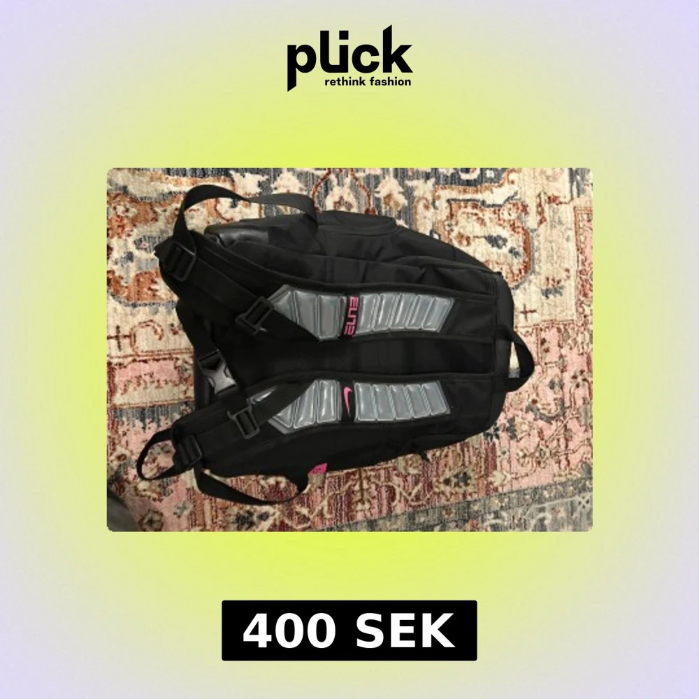 Nike Elite ryggsäck i svart med rosa logga och textdetalj. Snygg design med vadderade axelremmar och stora fack. Materialet är slitstark polyester och vissa delar har skinnliknande yta. Perfekt för dig som vill ha en sportig och praktisk väska med coola detaljer.