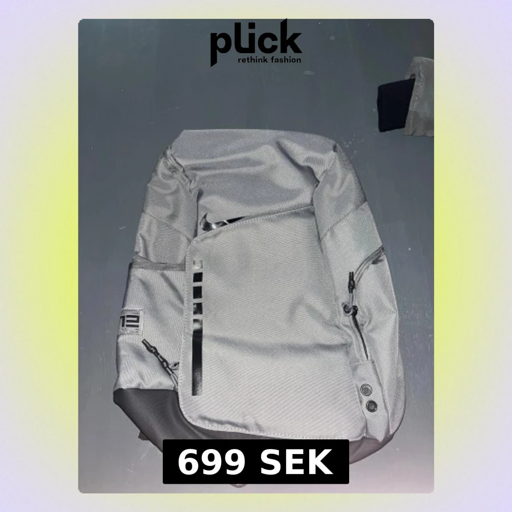 Snygg grå Nike Elite ryggsäck med svarta detaljer och flera dragkedjefack. Väskan har justerbara axelremmar med transparenta paneler och en tydlig Elite-logga på framsidan. Tillverkad i slitstark polyester, perfekt för att bära allt du behöver till skolan eller träningen.