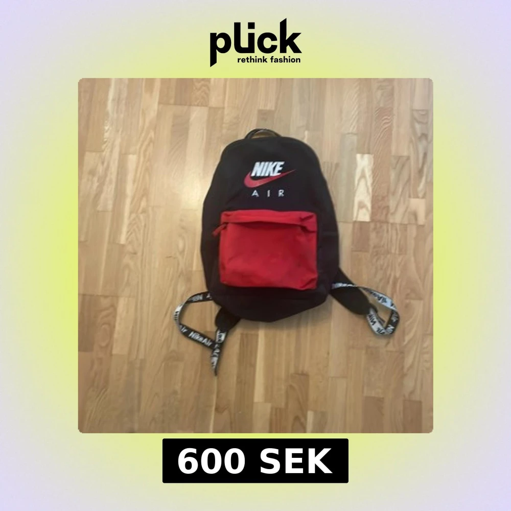 Säljer en snygg svart ryggsäck från Nike Air med röd frontficka och vita logotyper på både väskan och axelremmarna. Perfekt för skola eller träning, med justerbara remmar och praktiska fack.