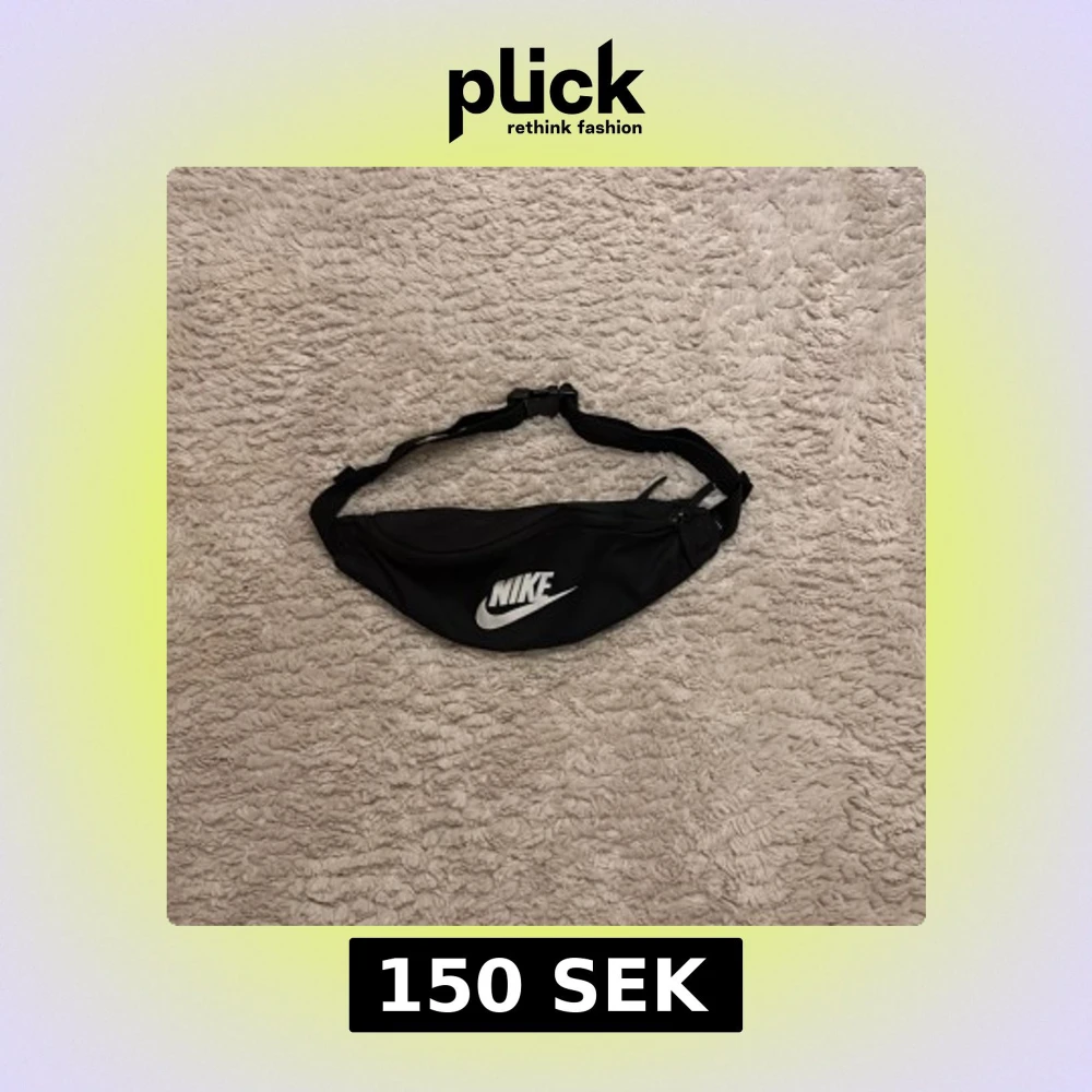 Snygg och praktisk svart midjeväska från Nike med justerbart band och dragkedja. Perfekt för att hålla dina saker säkra och nära till hands. Den har ett stort fack med meshficka inuti för extra förvaring.