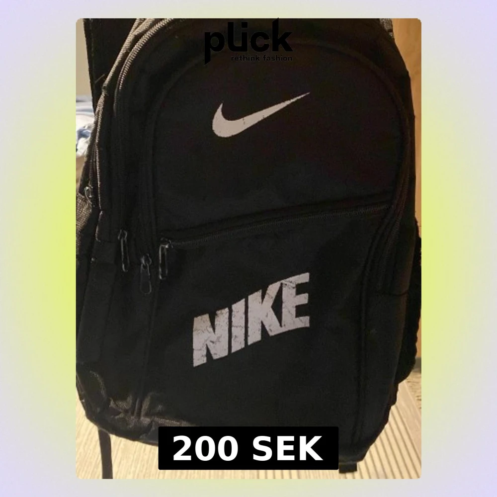 Snygg svart ryggsäck från Nike med klassisk logga i vitt. Ryggsäcken har flera fack med dragkedja och vadderad baksida för extra komfort. Perfekt för skola, träning eller utflykter. Tillverkad i slitstark polyester och har justerbara axelband.