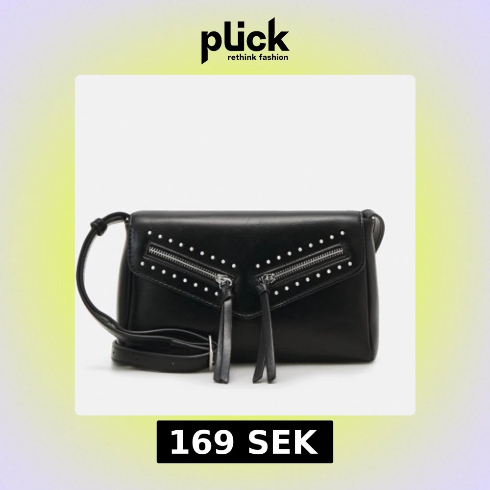 Svart axelväska med nitar och dragkedjor