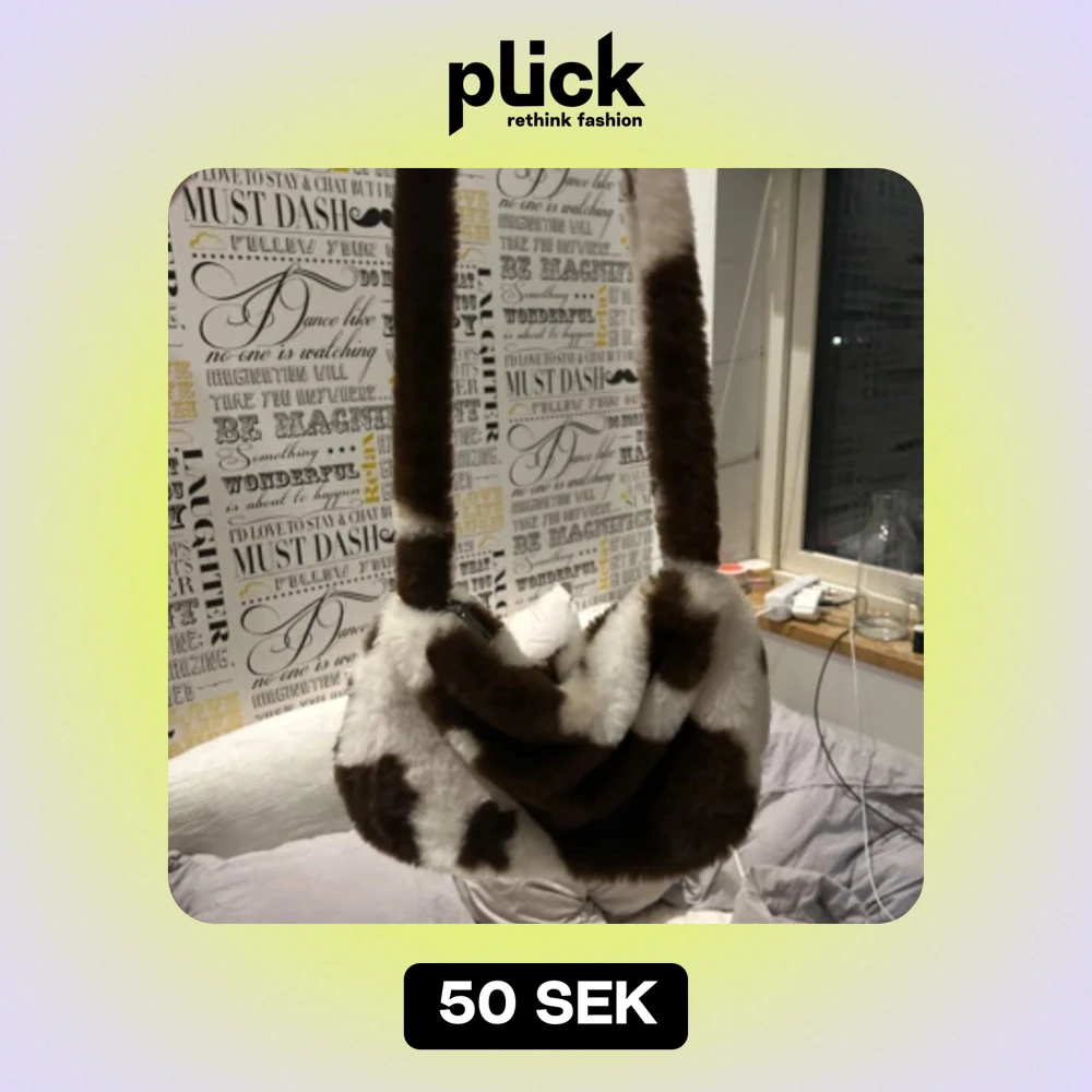 Handväska från Shein med ko mönster, den har inte innefickor men får plats med det nödvändigaste. Den är fluffig och väldigt mjuk.
