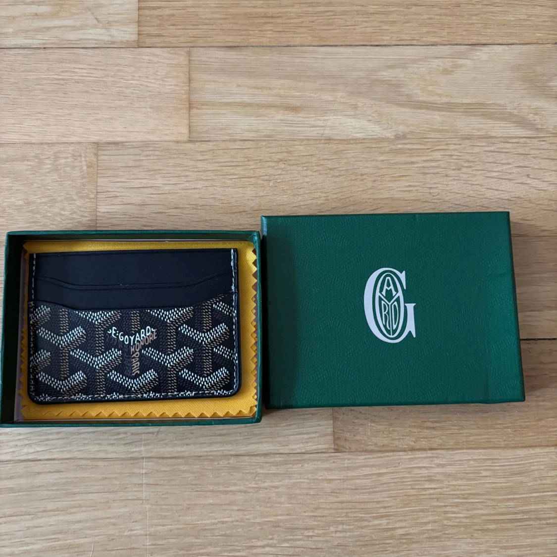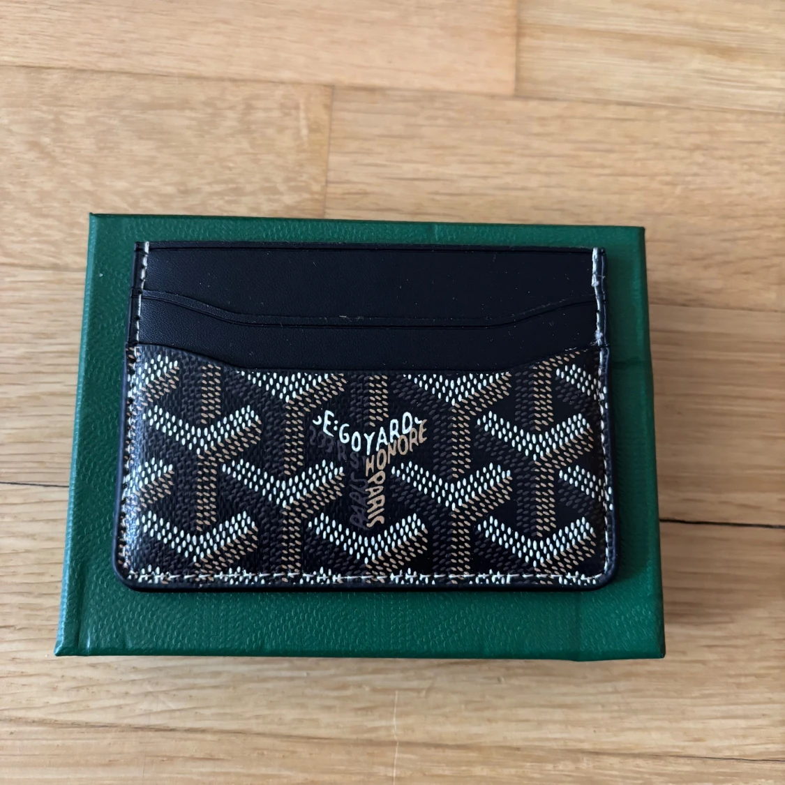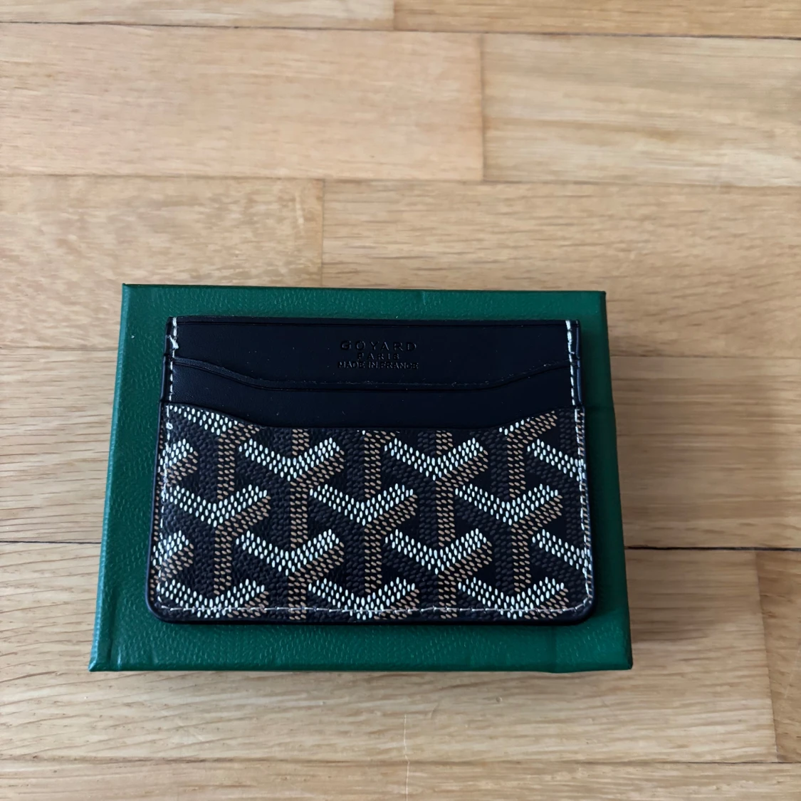 Snyggt och stilrent kortfodral i svart skinn med deras ikoniska grafiska mönster i vitt och brunt. Perfekt för kort och ID, smidig att ha i fickan. Kommer i original grön ask med logga.