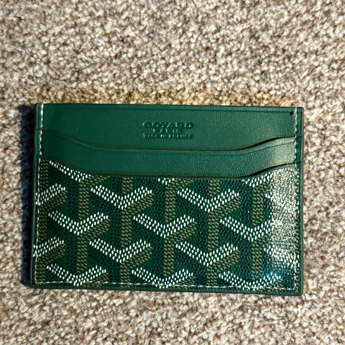 Säljer en grön korthållare i nytt skick.