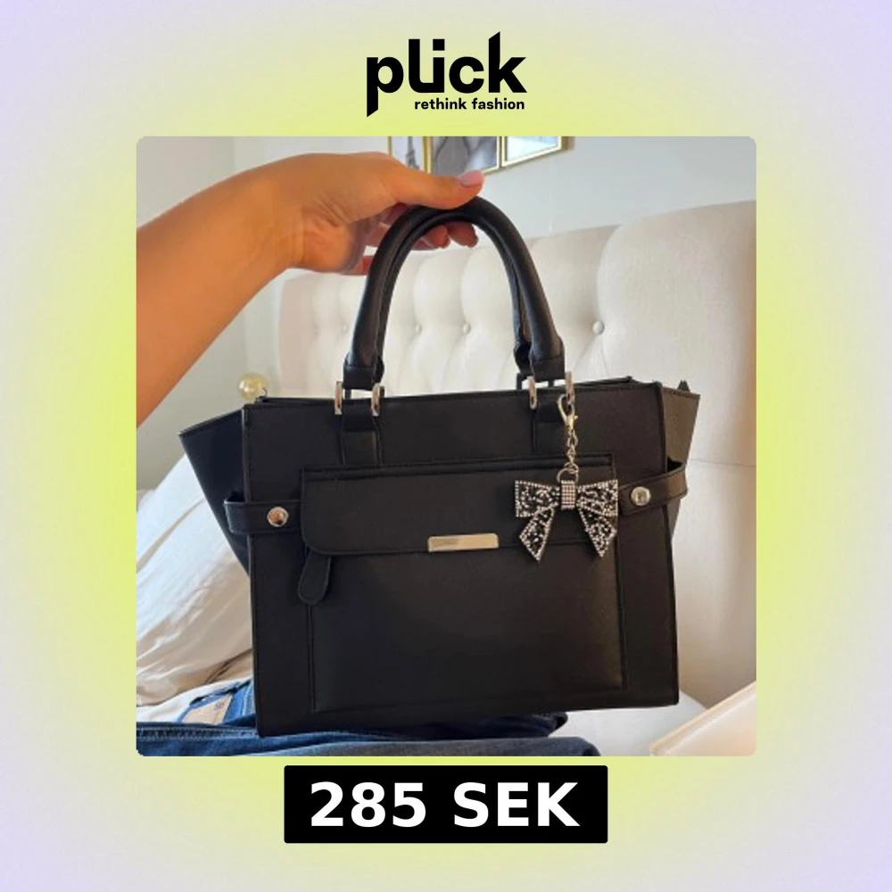 Snygg svart handväska som jag aldrig har använt , snygg till skola och annat . Mitt är 28b,24H och 12D