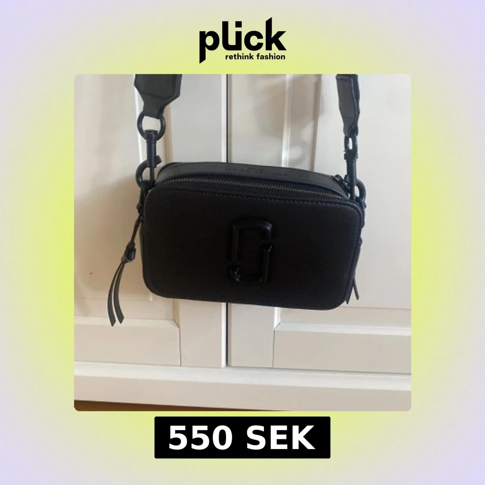 Helt ny svart axelväska likt Marc Jacobs med bred justerbar rem och dubbla dragkedjor. Väskan har en stilren, boxig form och med en diskret logga framtill. Perfekt storlek för det viktigaste och snygg detalj till din outfit.