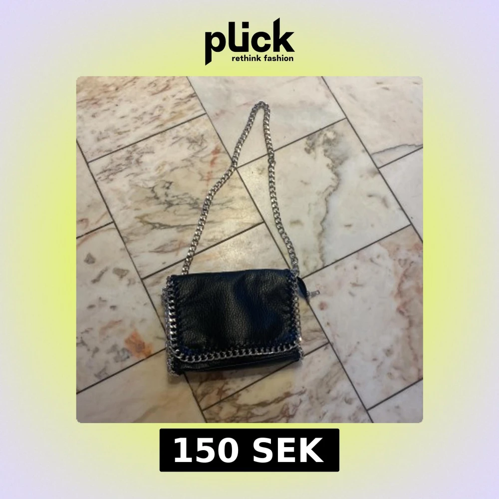 svart axelväska i skinnimitation med silverfärgad kedja.
