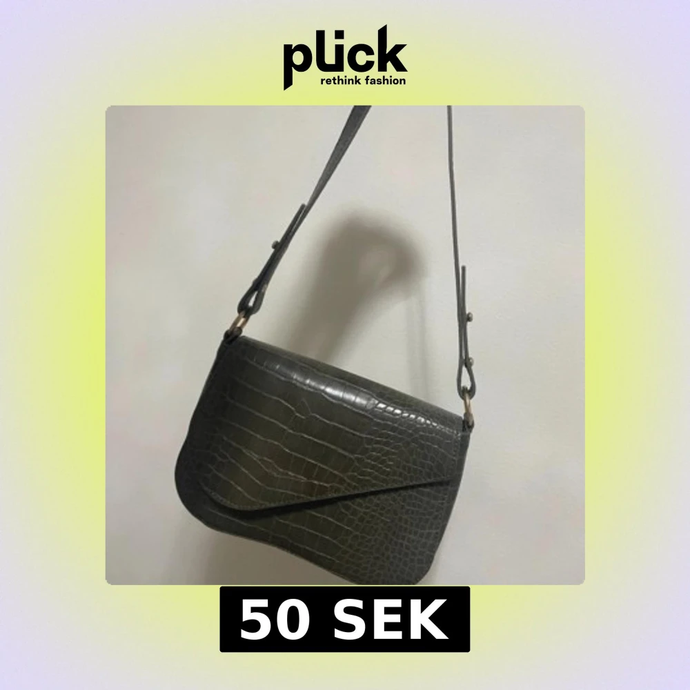 Snygg svart axelväska med krokodilmönster. Väskan har en justerbar axelrem och en stilren design som passar perfekt för en trendig look. Perfekt för att bära dina nödvändigheter med stil. Köpt från Nelly.