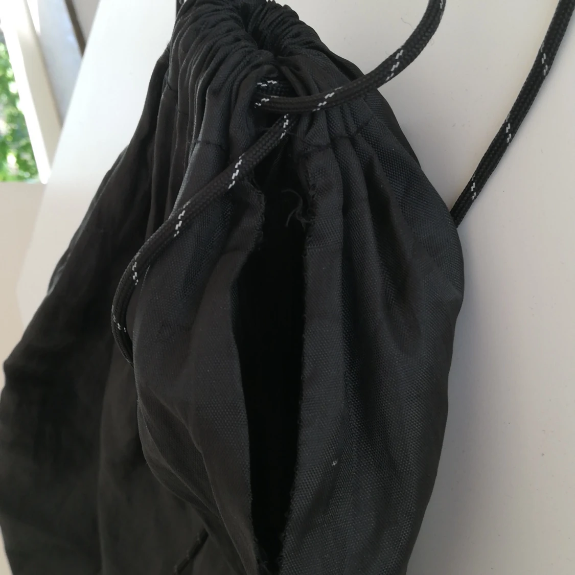Säljer en svart gympåse med BK Häcken-logga i gult och vitt. Väskan har dragskostängning med svarta snören och är perfekt för träning eller som sportväska. Klassisk design med klubbens emblem tryckt på framsidan med en signatur på.