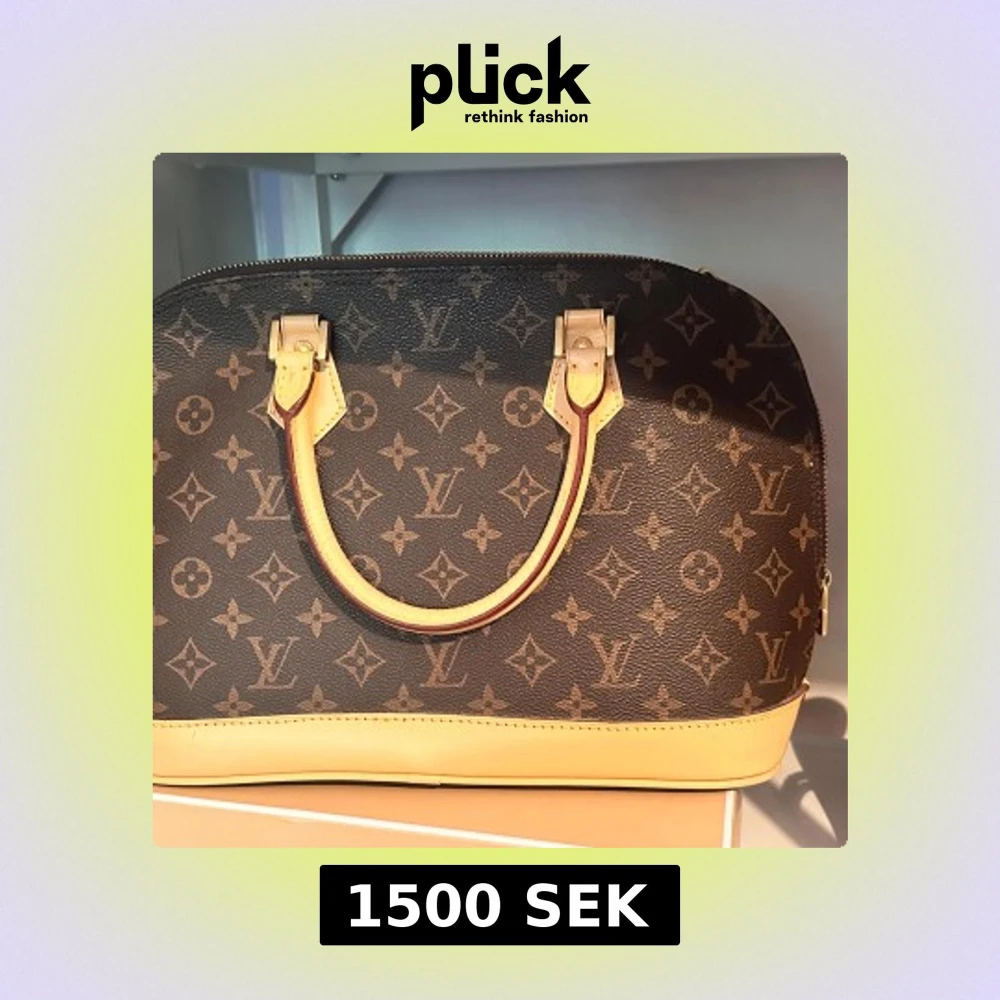 Säljer en klassisk handväska i monogrammönstrat brunt och beige skinn. Väskan har rundad form, två rejäla handtag och detaljer i ljust skinn. Dragkedja med logga och ikoniskt mönster över hela väskan.