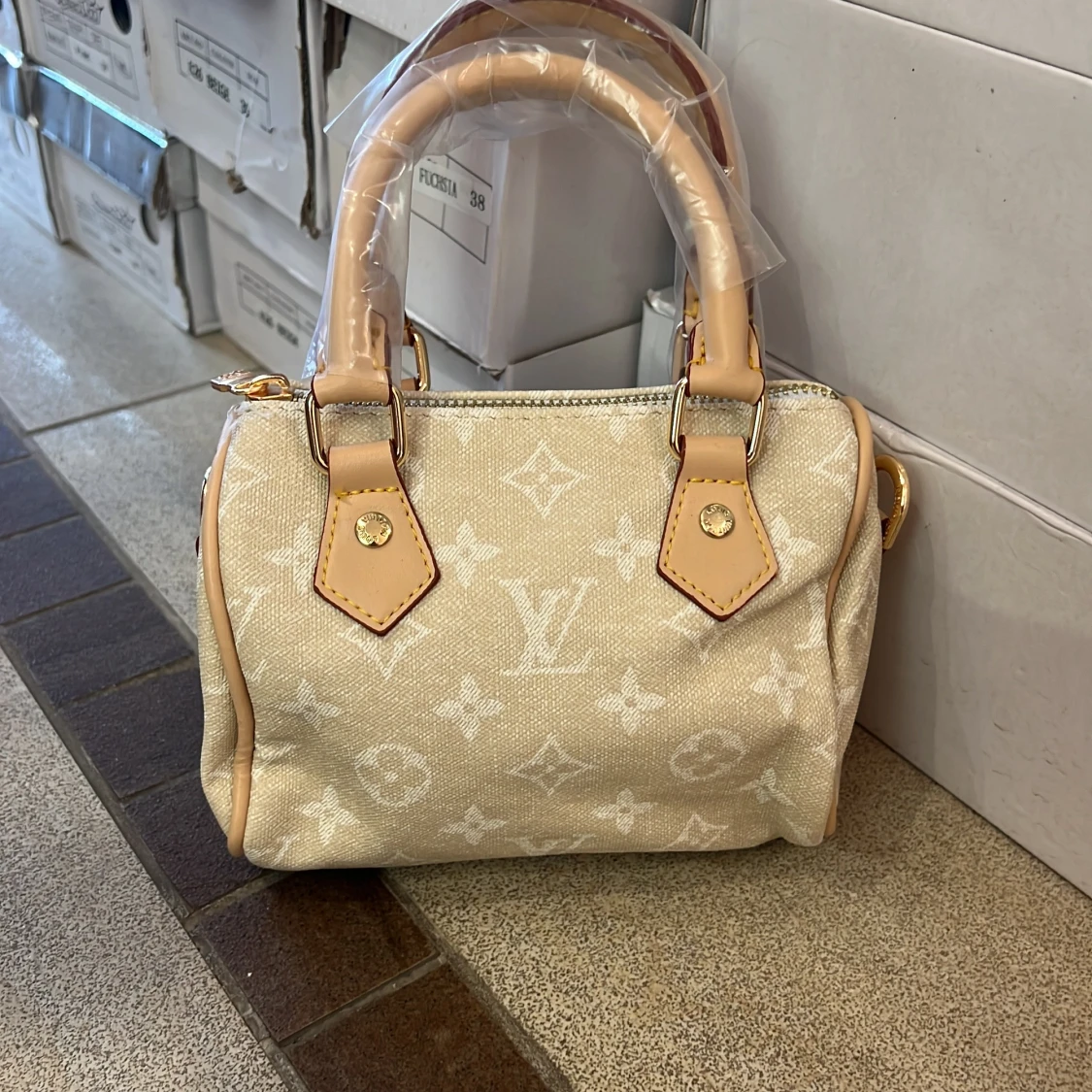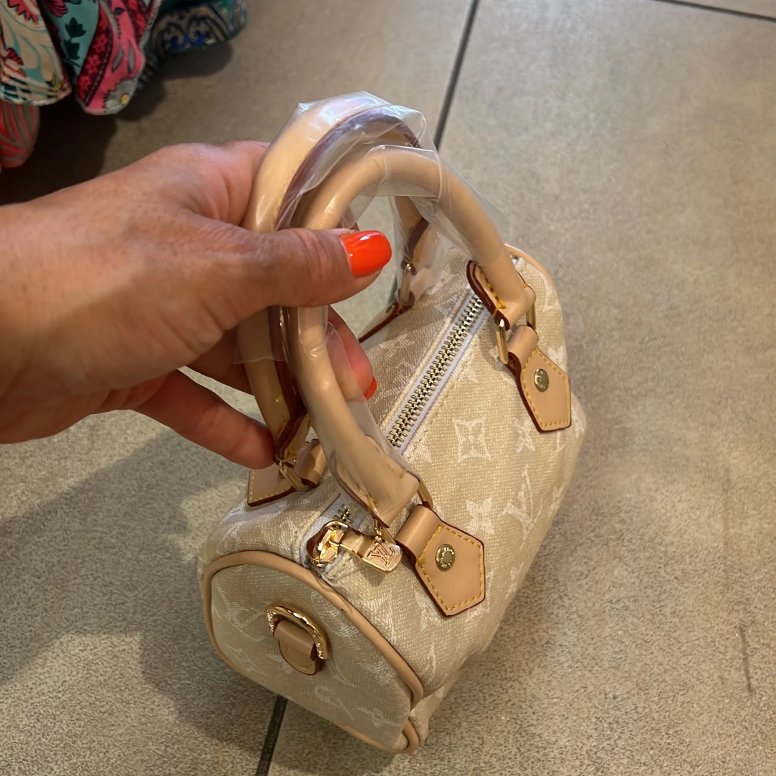 Beige axelväska med pärldetaljer