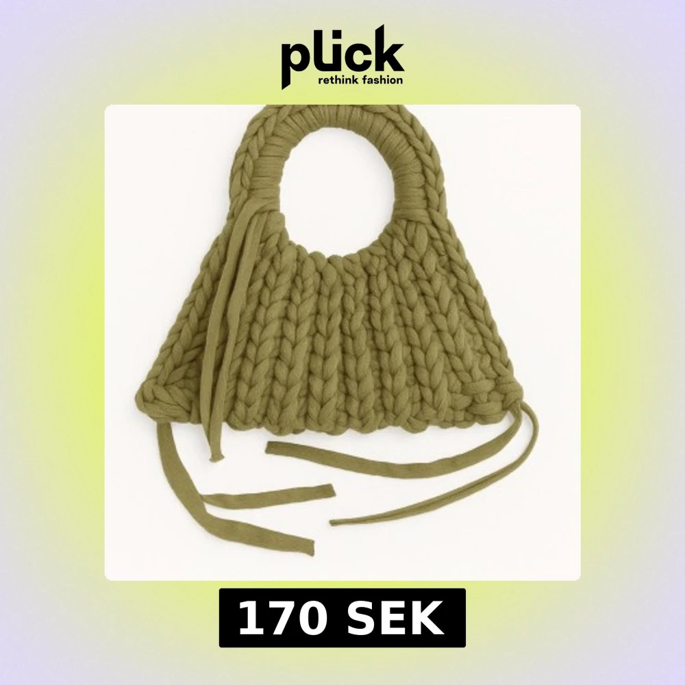 Unik handväska i olivgrönt, grovstickat material med rundat handtag och snygga snörningsdetaljer. Väskan har en cool, chunky look och passar perfekt för dig som vill sticka ut med accessoarerna.