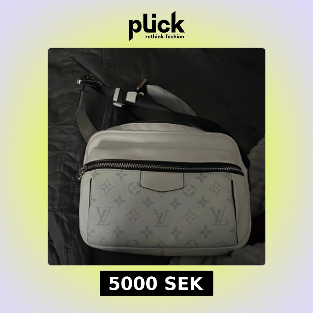 Snygg vit axelväska med klassiskt monogrammönster. Väskan har en justerbar axelrem och en praktisk dragkedja framtill. Perfekt för att bära dina dagliga nödvändigheter med stil.