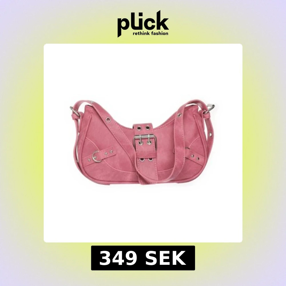 Rosa axelväska i syntetmaterial med bred axelrem och snygga metalldetaljer. Väskan har ett dekorativt bälte framtill och flera nitar som ger en edgy vibe. Perfekt storlek för det viktigaste och lätt att matcha till olika outfits.