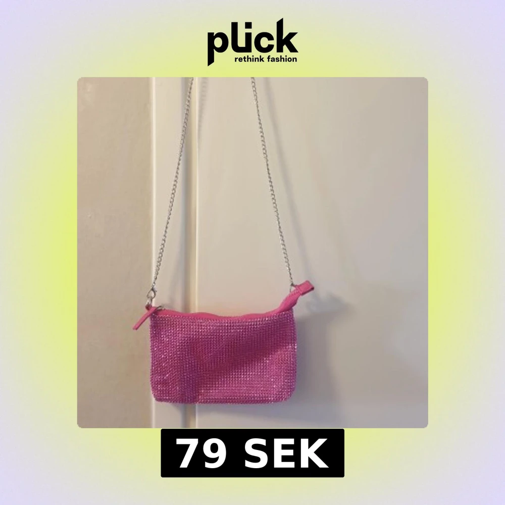Säljer en rosa glittrig axelväska från Primark med silverfärgad kedja. Väskan har dragkedja upptill och är täckt av små glittrande stenar. Perfekt för att addera lite extra bling till din outfit!