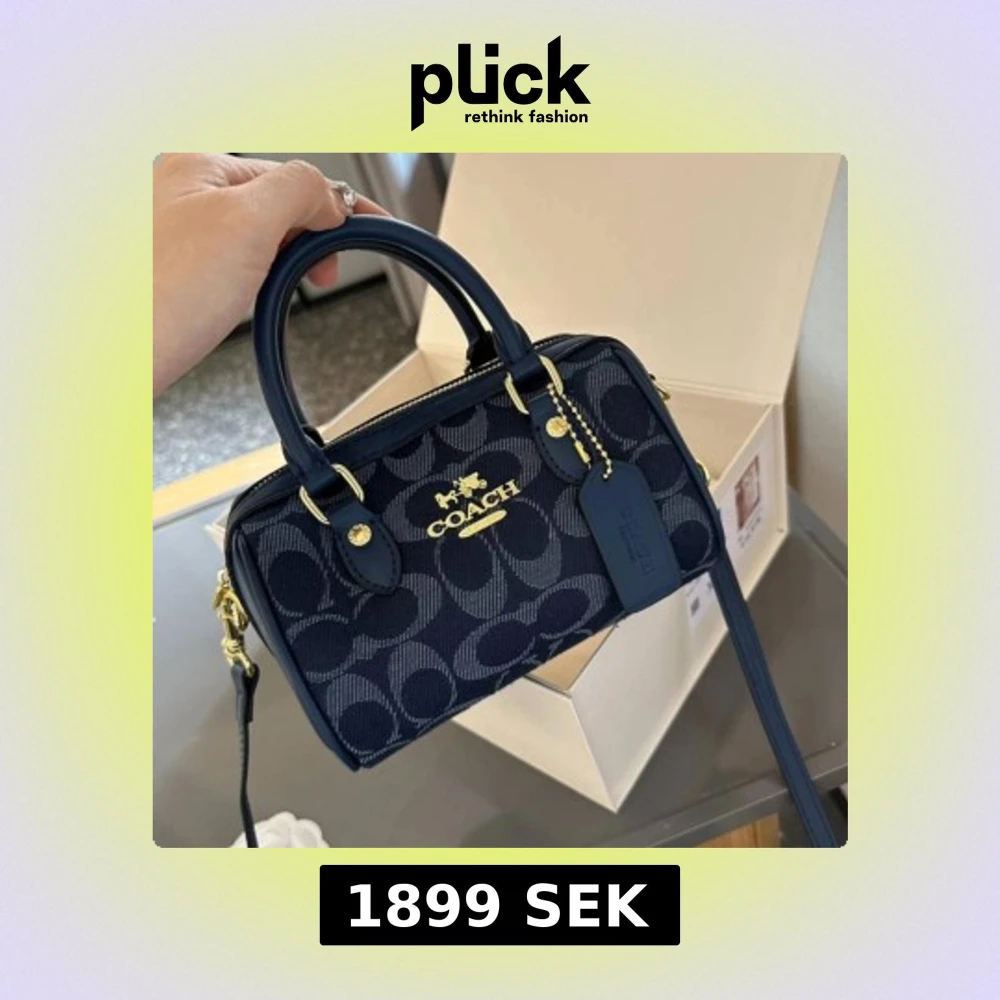 Säljer snygga handväskor från Coach i flera färger. Väskorna har klassisk boxig form, dubbla handtag, avtagbar axelrem och guldfärgade detaljer. Välj mellan marinblått, beige med bruna detaljer eller mörkbrun med svart. Coach-logga framtill och dragkedja upptill.