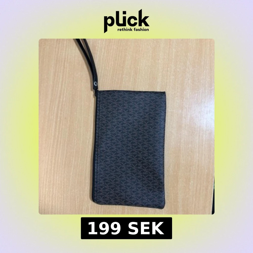 Stilren svart kuvertväska med diskret geometriskt mönster och handledsrem. Väskan har dragkedja upptill och är perfekt för att bära det viktigaste. Materialet känns som syntet och ytan är lätt att torka av. Enkel att matcha till olika outfits.