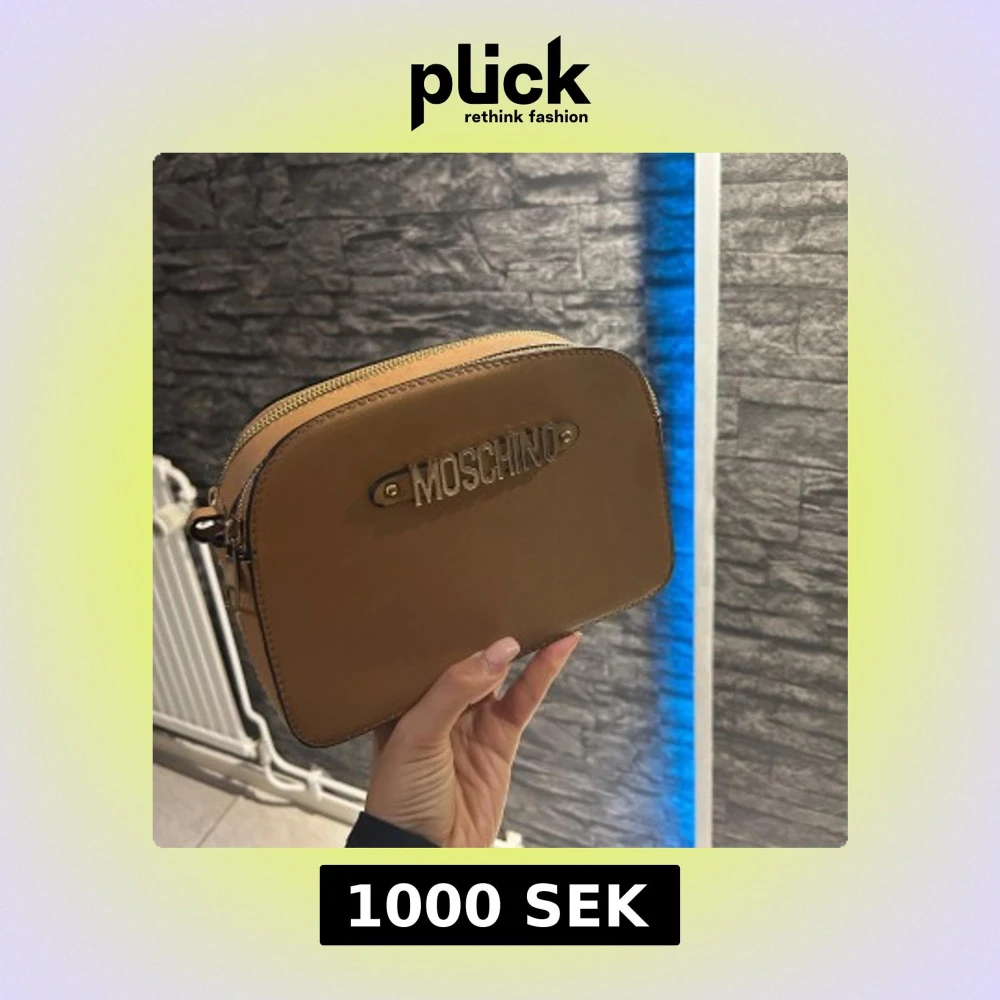 Säljer en snygg beige axelväska från Moschino med guldiga detaljer och dubbla dragkedjor. Väskan är i skinn och har ett stilrent, fyrkantigt format med Moschino-logga framtill. Perfekt storlek för det viktigaste och enkel att matcha till olika outfits.