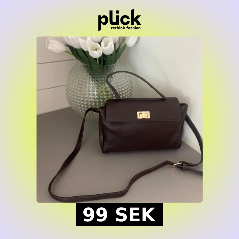 OANVÄND!!! 🌟Snygg mörkbrun axelväska i skinn med stilren, rektangulär form och guldfärgat lås framtill. Väskan har både handtag och justerbar axelrem, samt flera fack inuti med dragkedja.