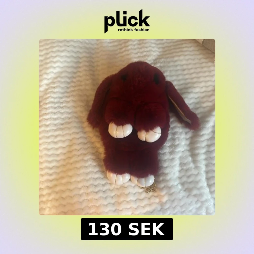 Supergullig axelväska i form av en kanin, vinröd och fluffig med vita tassar och guldfärgad kedja. Väskan har dragkedja upptill och är tillverkad i mjuk syntetpäls. Perfekt för dig som vill sticka ut med en unik accessoar!