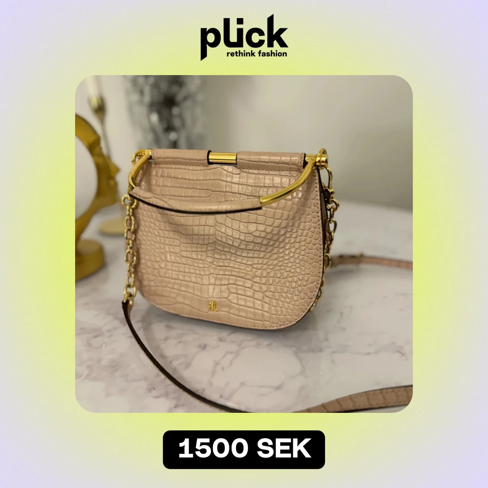 Snygg rosa handväska med krokodilpräglat mönster och gulddetaljer. Väskan har en elegant kedjerem och en stilren design som passar perfekt för både vardag och fest. Den är liten och smidig, perfekt för att bära med sig det viktigaste. En riktig stilhöjare!