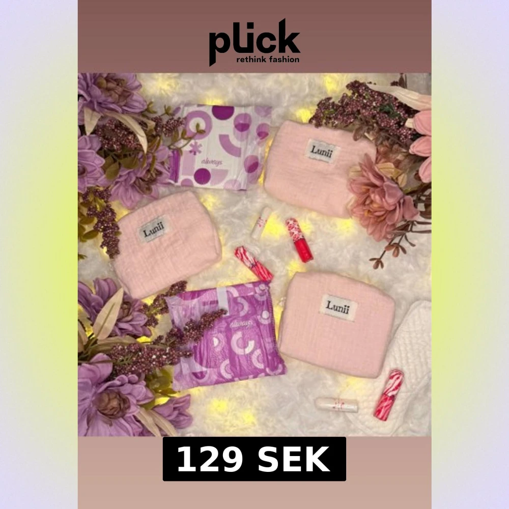 Jag och mina vänner driver ett UF företag där vi säljer supersöt ljusrosa necessär från Lunii i mjuk bomull med dragkedja. Perfekt storlek för att ha med tamponger, bindor eller småsaker i väskan. Stilren design med Lunii-logga framtill och praktiska fack inuti.