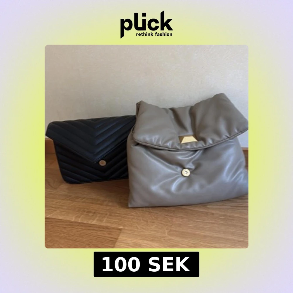 Säljer två snygga axelväskor i quiltad design med kedjeremmar. Den ena är svart med hjärtdetalj på baksidan och guldknapp, den andra är beige med stor guldspänne och mjuk, puffig look. Båda i skinnimitation och perfekta för att lyfta din outfit.