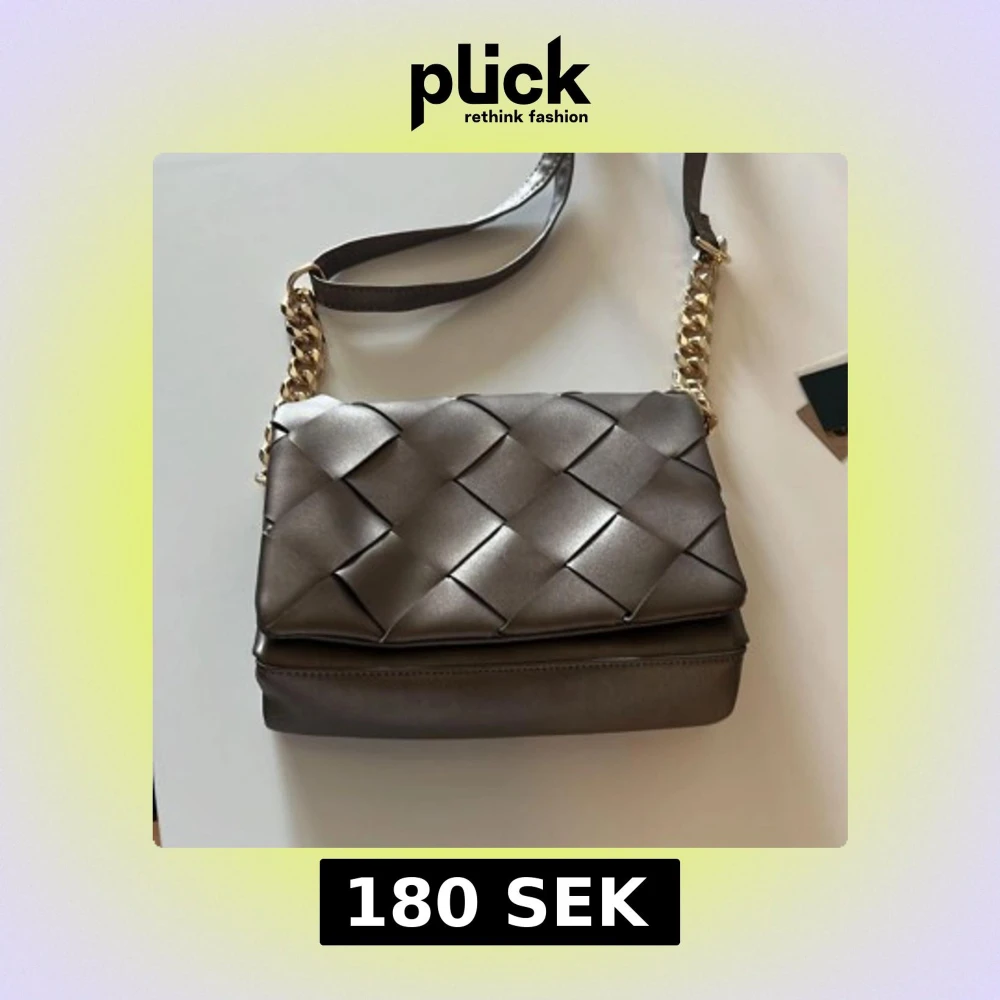 Snygg brun axelväska med flätat mönster och guldfärgad kedja. Perfekt för att ge din outfit en elegant touch. Väskan har en praktisk storlek och är lätt att bära med sig.