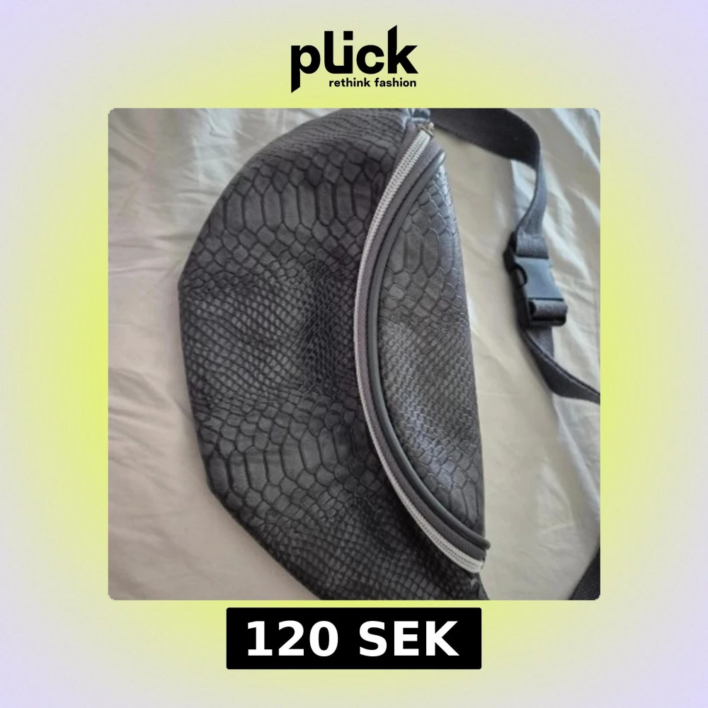 Snygg grå magväska med ormskinnsmönstrad yta och justerbart band med plastspänne. Väskan har en dragkedja framtill och är perfekt för att bära det viktigaste. Materialet känns mjukt och ger en cool look.