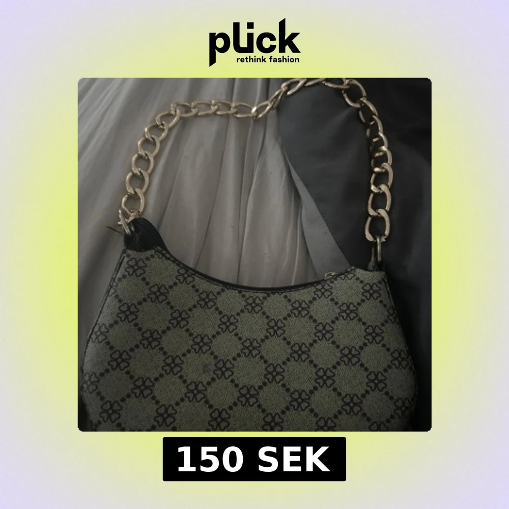 Snygg axelväska med ett unikt mönster i svart och grönt. Väskan har en elegant kedja som axelrem och en stilren design. Perfekt för att ge din outfit en extra touch.