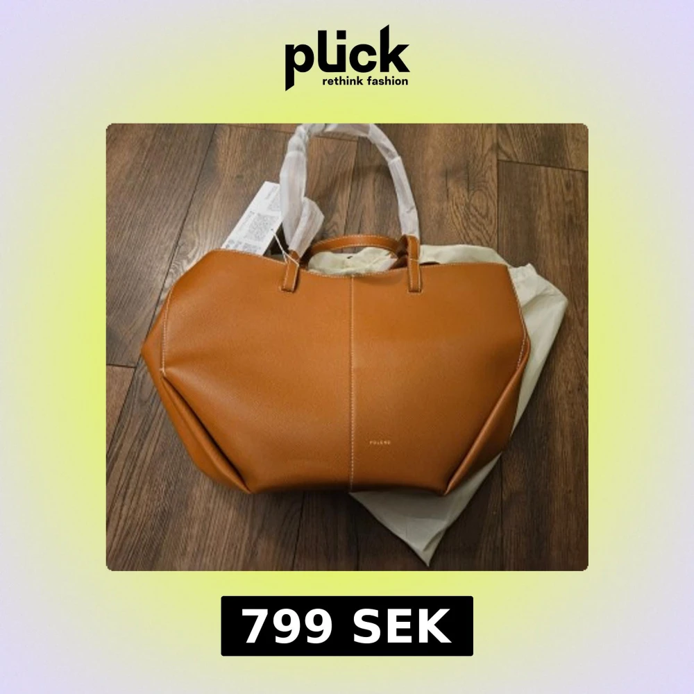 Snygg handväska från Polène i brun färg med stilren, geometrisk form. Väskan är tillverkad i skinn med vita kontrastsömmar och har både korta och långa handtag. Perfekt för dig som gillar minimalistisk design och vill ha en rymlig väska med exklusiv känsla.