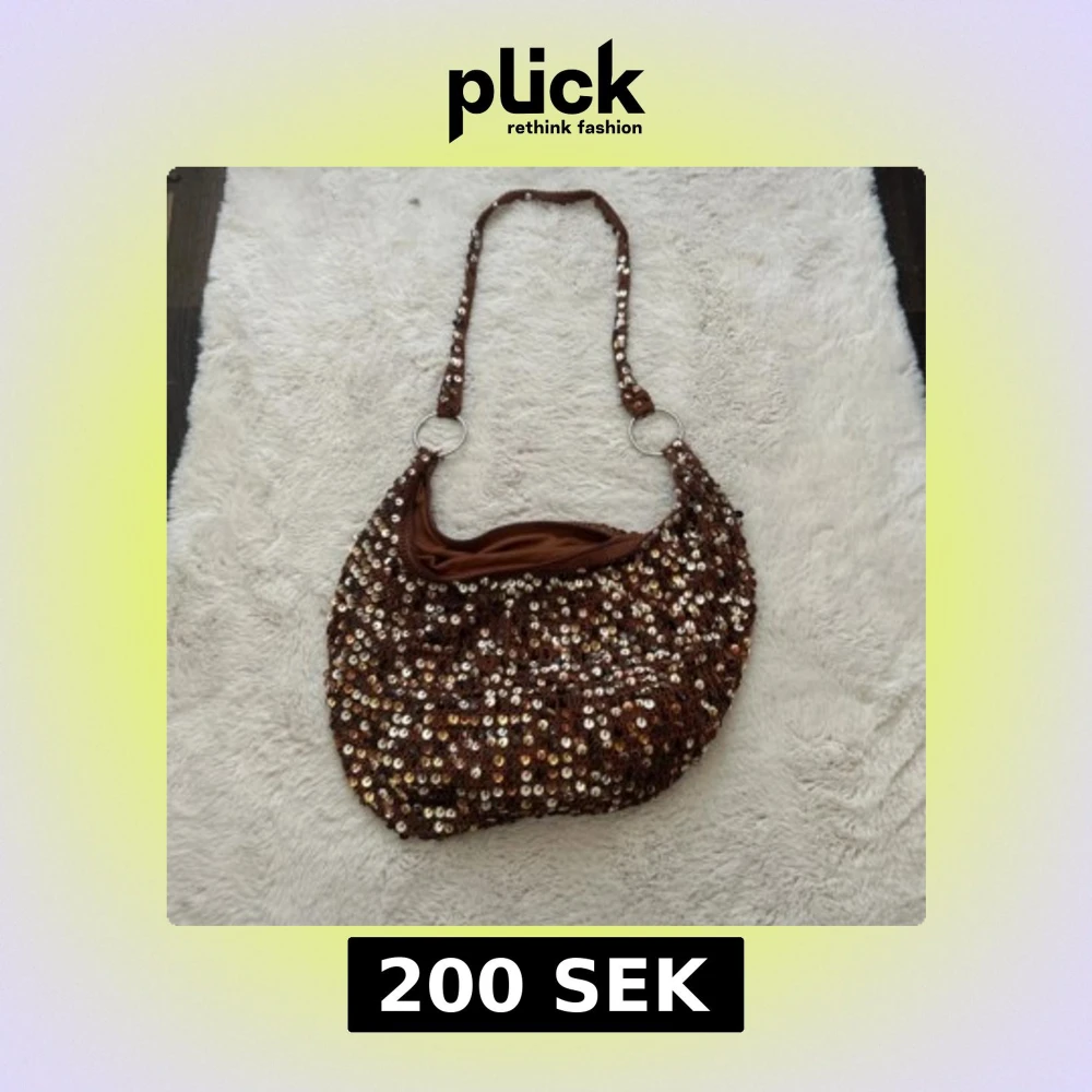 Snygg brun axelväska från Fashion Express med glittriga paljetter över hela väskan. Väskan har en mjuk form, bred axelrem med silvriga ringar och dragkedja upptill. Perfekt för dig som vill sticka ut med en unik accessoar.