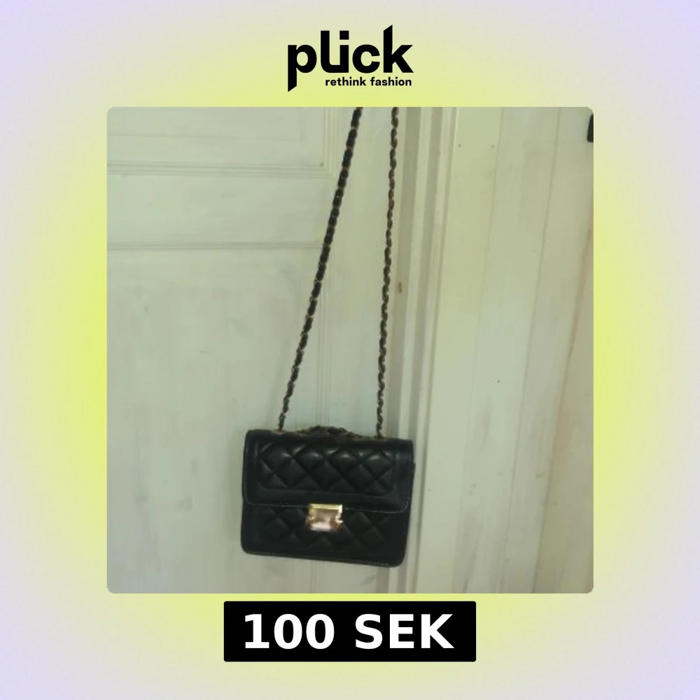 Snygg svart axelväska med quiltat mönster och guldfärgat spänne framtill. Kedjerem med insytt svart material ger en lyxig känsla. Perfekt storlek för det viktigaste och stilren design som passar till många outfits.