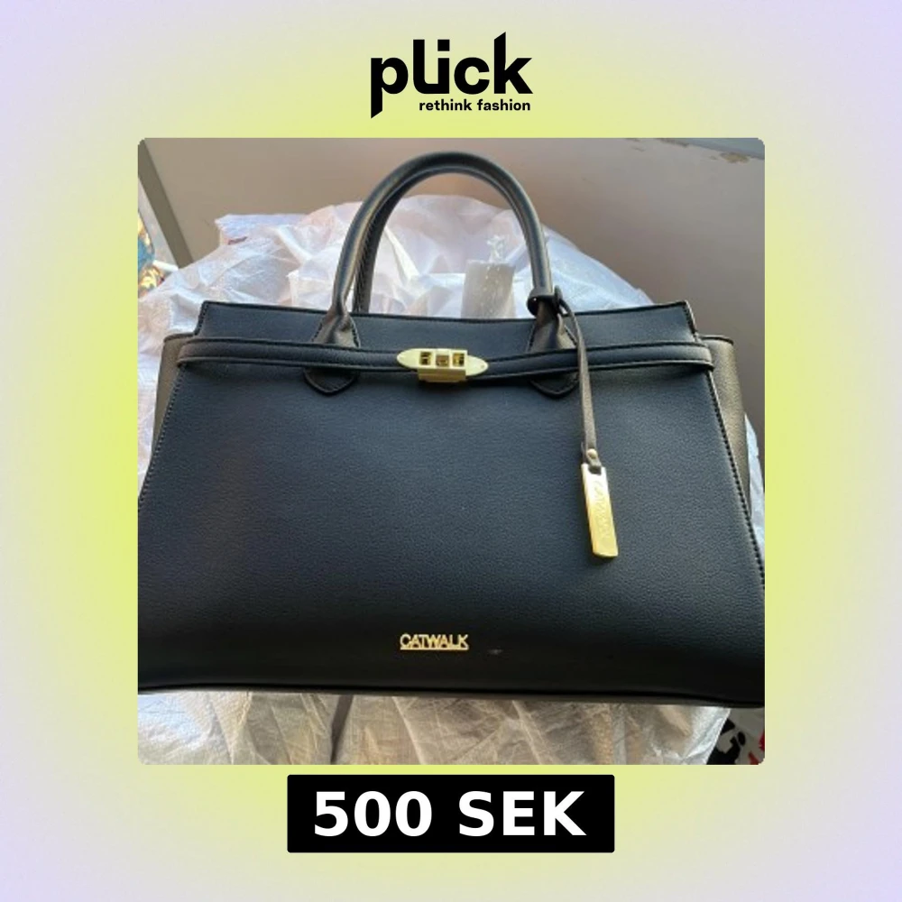 Stilren svart handväska från Catwalk med guldfärgade detaljer och lås framtill. Väskan har dubbla handtag, dragkedjeficka på baksidan och rymligt innerfack. Pris kan diskuteras i DM. Skriv gärna till mig innan du vill köpa!