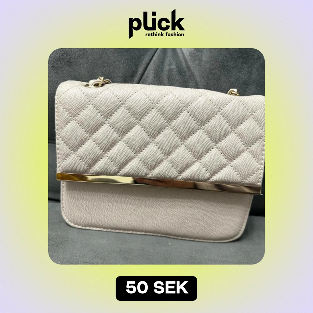 Snygg beige axelväska i quiltat mönster med gulddetaljer. Perfekt för både vardag och fest! Väskan har en elegant kedja som axelrem och en stilren design. Passar till alla säsonger och outfits.