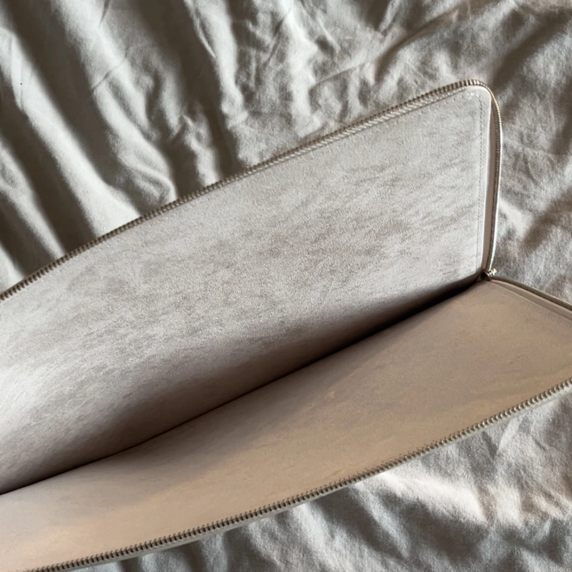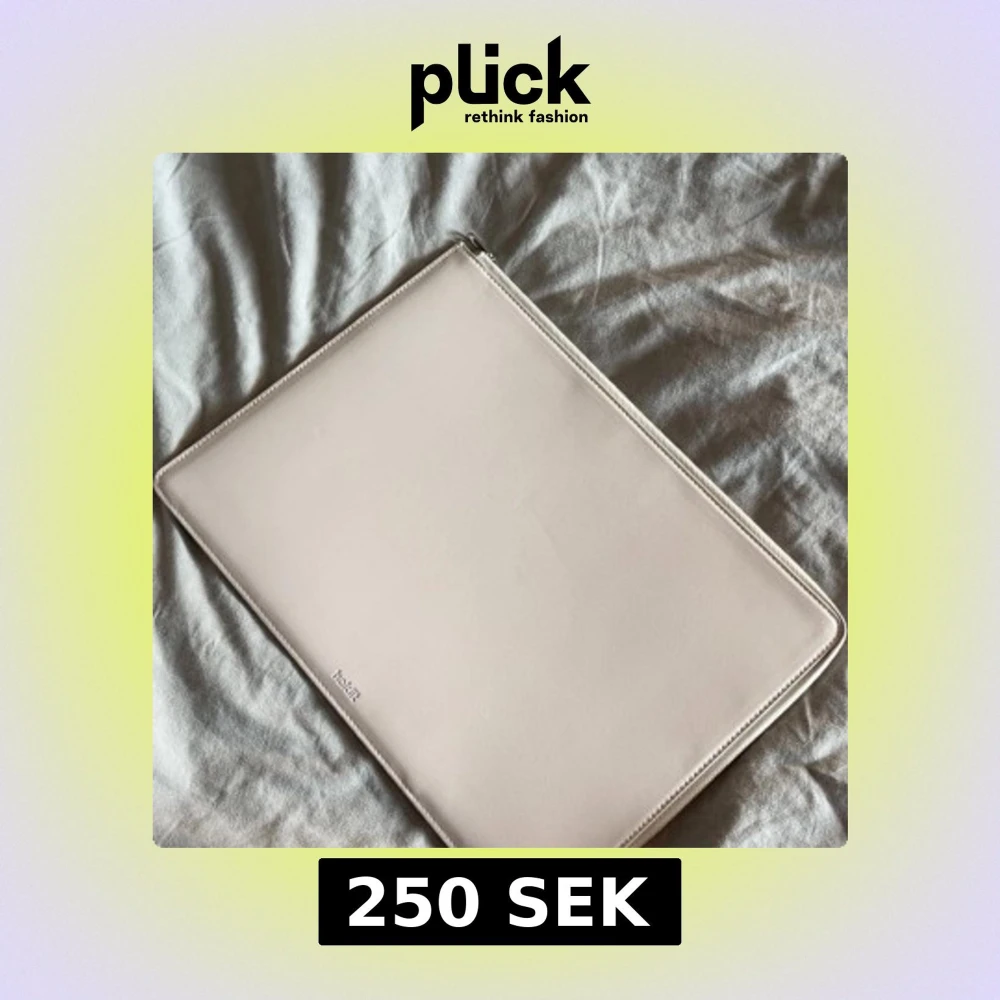 Stilren och tunn datorväska från Holdit i beige syntetmaterial. Väskan har dragkedja runtom och är fodrad på insidan för extra skydd. Perfekt för att bära med sig laptopen på ett snyggt och minimalistiskt sätt. Storlek 35,25 cm, inte i originalförpackning, aldrig andvänt