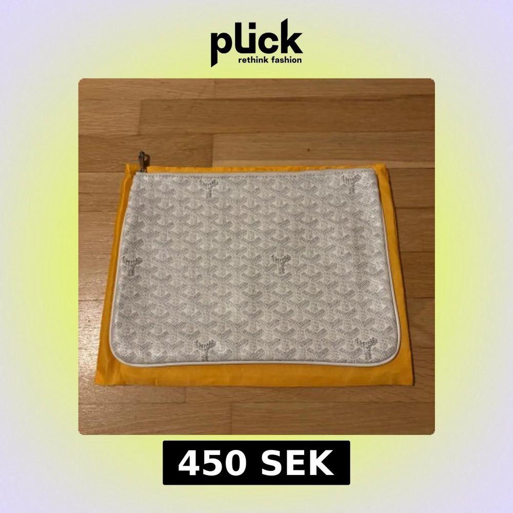 Säljer en stilren vit handväska med deras ikoniska mönster och silverfärgad dragkedja. Väskan är i skinn och har en clean look med Goy4rd-logga tryckt på flera ställen. Kommer med original gul dustbag. Helt ny. Om du har tur så kan du få plats med en liten bärbar dator. Går att använda som necessär väska.