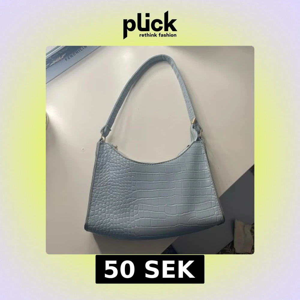 Blå läder väska. Vet inte vart den kommer ifrån.