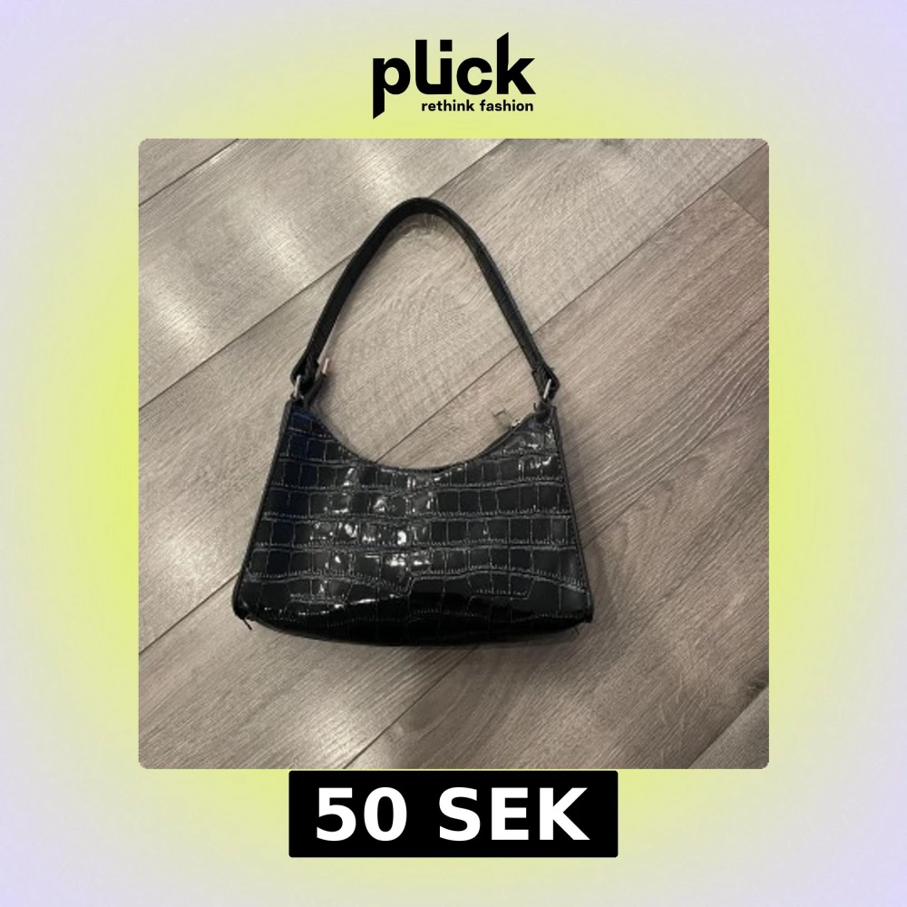 Snygg svart axelväska med glansig croco-imitation och stilren siluett. Väskan har ett kort axelband och stängs med dragkedja upptill. Perfekt accessoar för att lyfta din outfit.