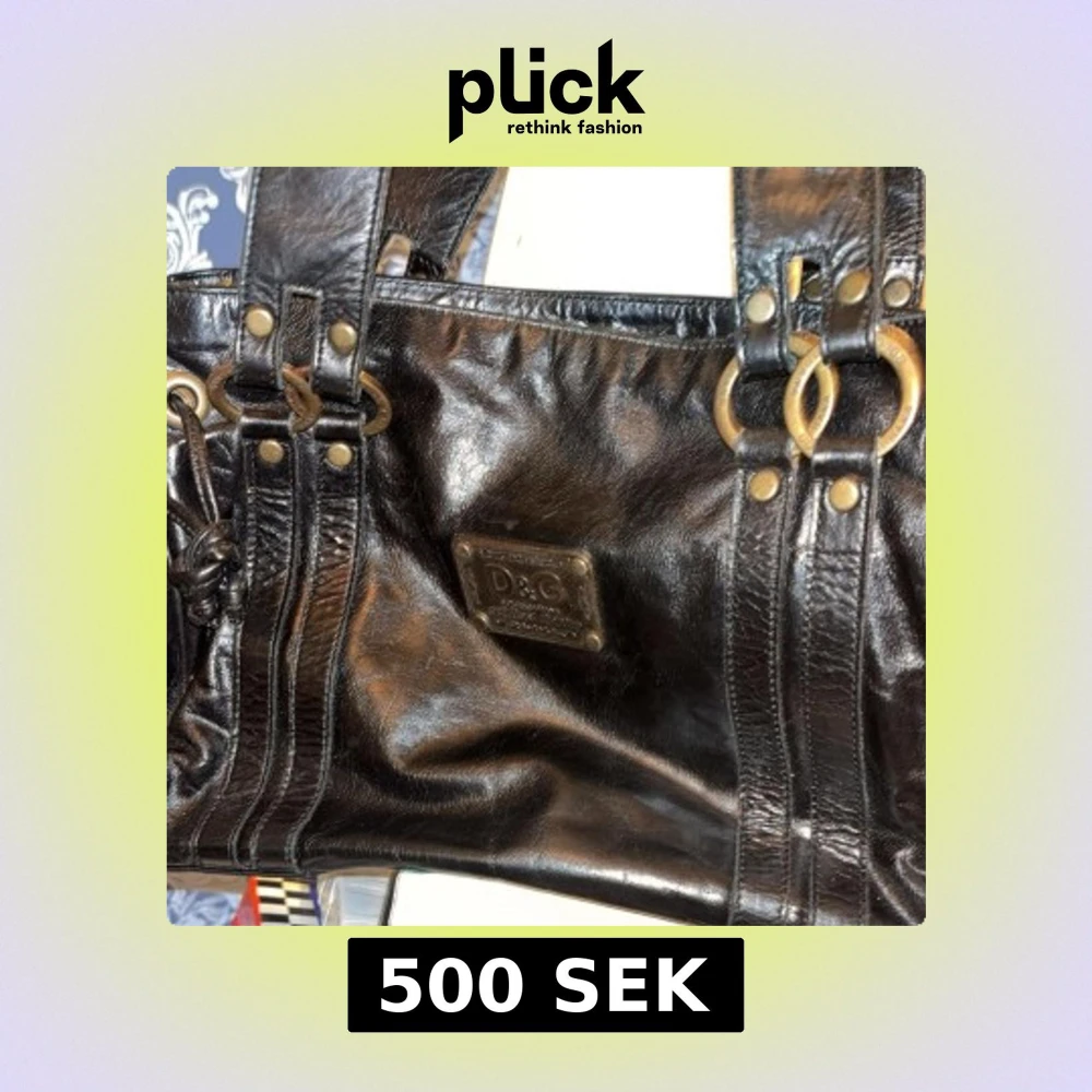 Snygg svart skinnväska från Dolce & Gabbana med dekorativa ringdetaljer och nitar. Väskan har dubbla handtag och en praktisk innerficka med dragkedja. Perfekt för att bära med sig det nödvändigaste med stil.